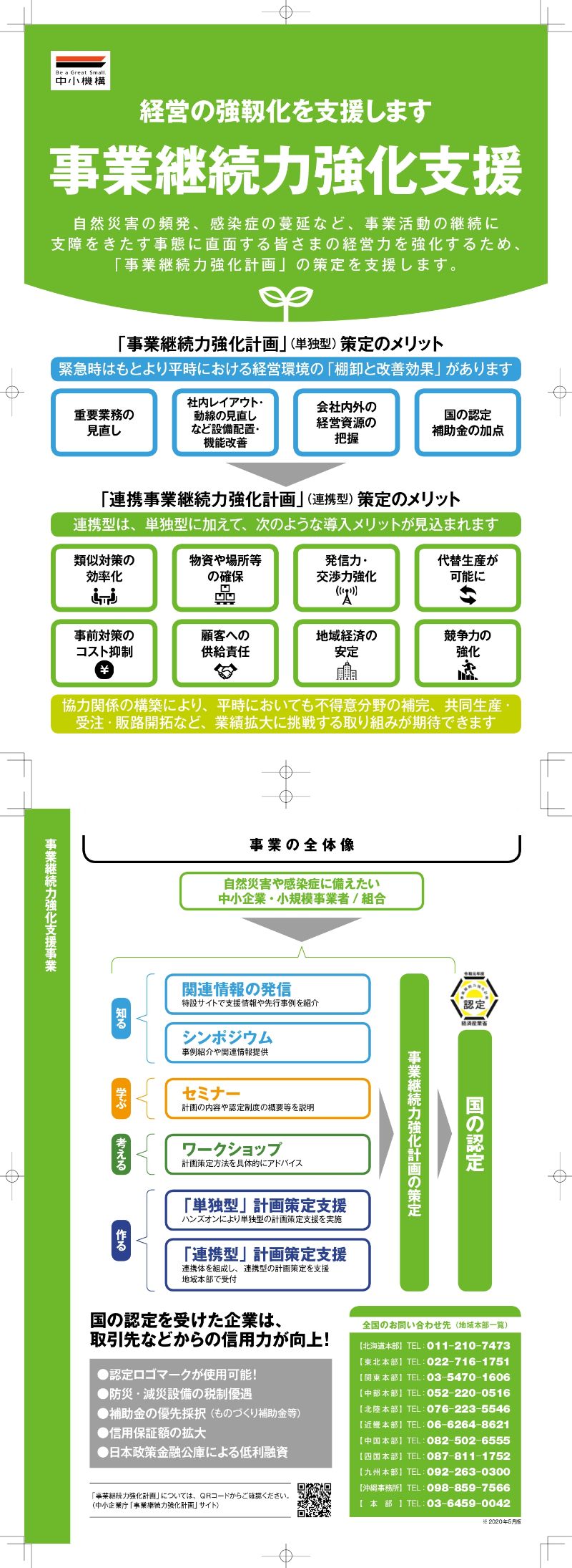 中小機構では自然災害の頻発、感染症の蔓延など、事業活動の継続に支障をきたす 事態に直面する皆さまの経営力を強化するため、「事業継続力強化計画」の策定を 支援しています。