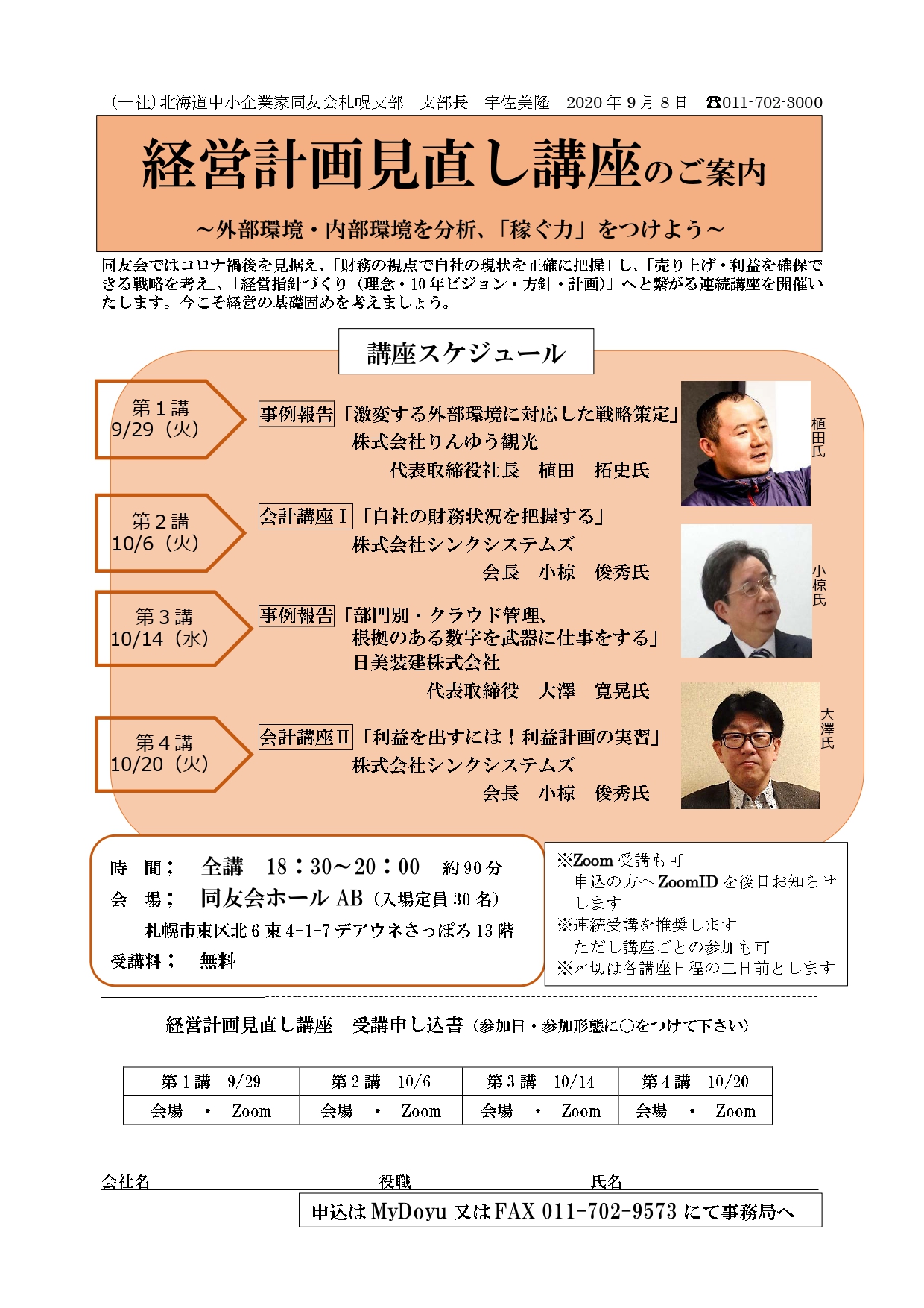 札幌支部ではコロナ禍後を見据え「財務の視点で自社の現状を正確に把握」し、「売り上げ・利益を確保できる戦略を考え」、「経営指針づくり(理念・10年ビジョン・方針・計画)」へと繋がる連続講座を開催いたします。