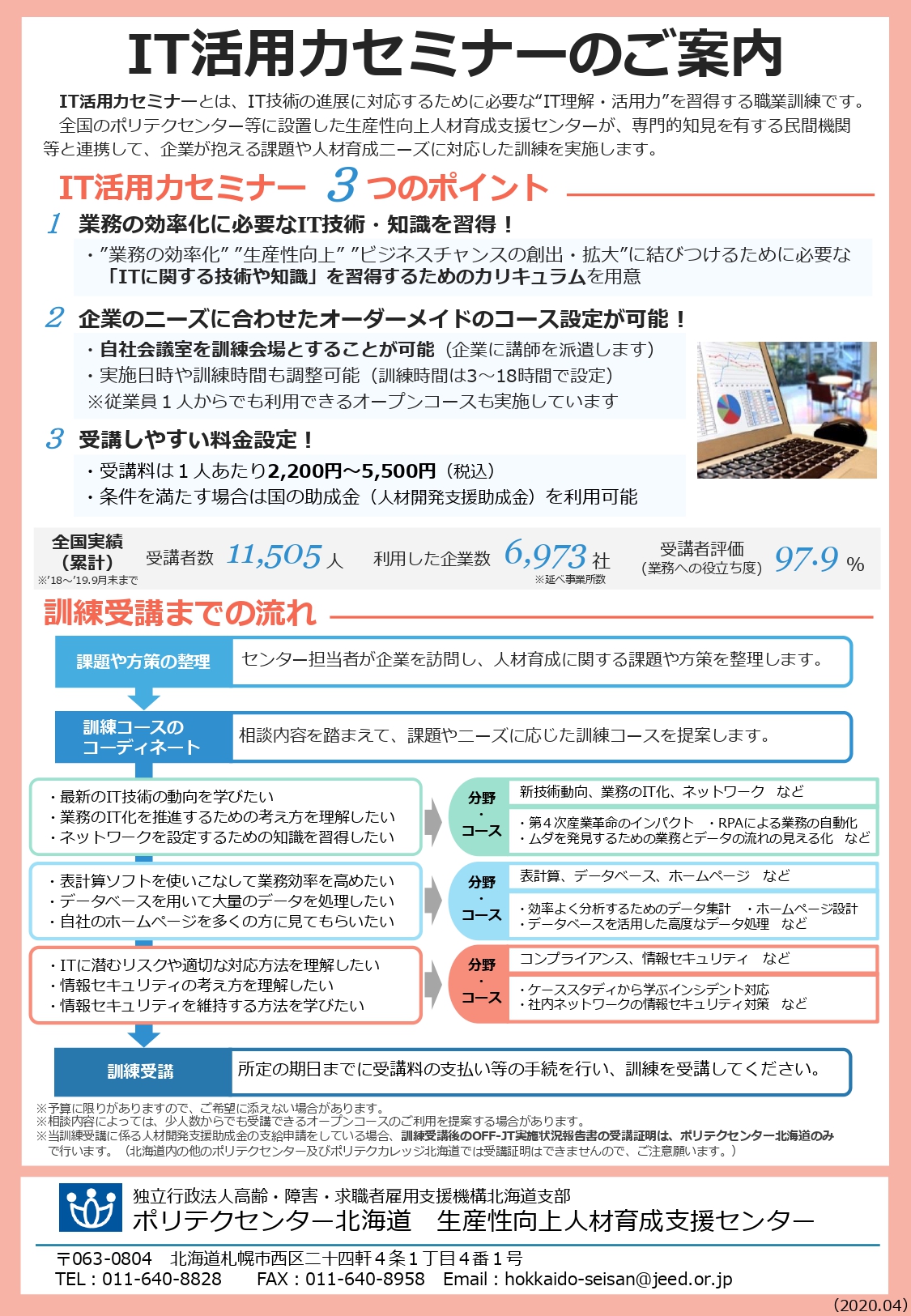 ポリテクセンター北海道 生産性向上人材育成支援センターより「IT活用力セミナー」のご案内です。