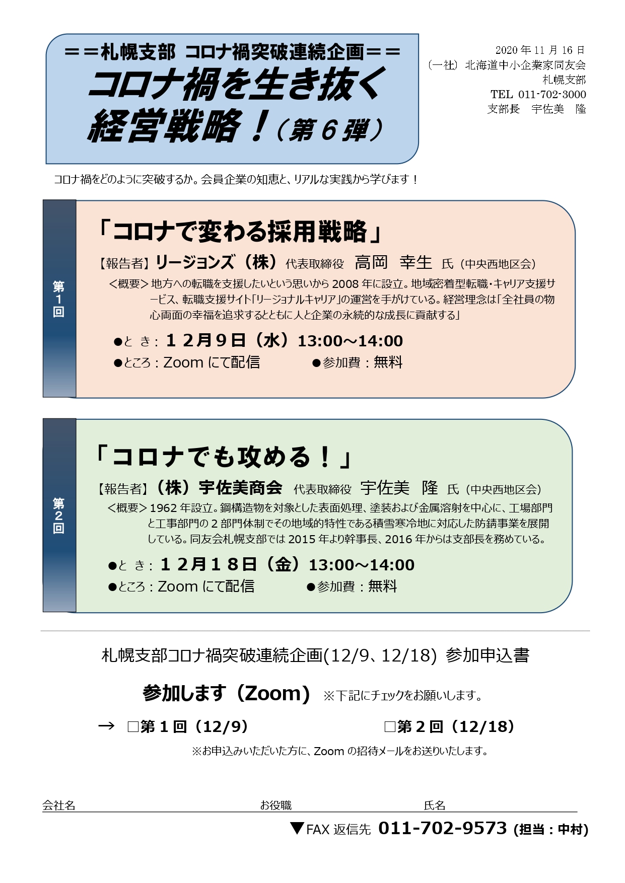 札幌支部 コロナ禍を生き抜く経営戦略(第6弾)のご案内