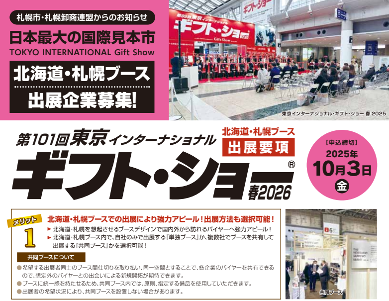 2026年2月4日(水)~6日(金)「東京インターナショナル・ギフト・ショー春2026」に北海道・札幌ブースで出展する道内企業募集中!!
