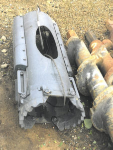 構造物の取り壊し時に、既存杭の引き抜きで杭の先端が抜けず、取り残されることで起こるトラブルがよくあります。そこでケーシング・クラムは、既存杭の先端に到達したパイプの先端が油圧で閉じ、杭を内包したまま引き抜きます。従来の工法と違い既存杭の完全撤去を可能とし、証明することができるようになりました。